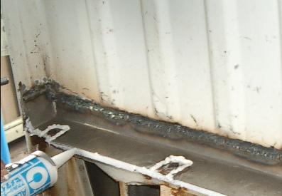 | 仕入れてきた、荷台を乗せる為にシーリングをします。 半乾きで荷台を乗せると、べったりと密着して防水効果万全です!