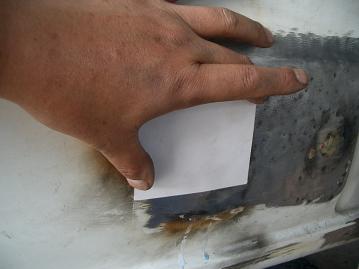 | 修行人:実は、この、マグナという写真の通りの物を使い穴埋めをしていたら このザマだ・・・・・ 説明:修行人が仕入れた代車を修行がてら鈑金していたら、ピンホールがあき、欲を出して埋めていたら、収集がつかなくなり・・・・・・ このザマだ・・・・・ |