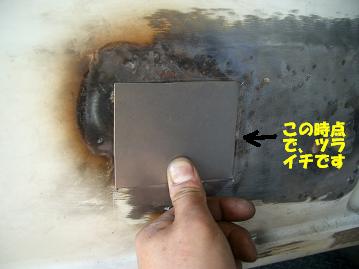 殿(修行人のところの社長):だめだこりや〜、こんなコン、しちゃダメジャンケ〜(甲州弁で激怒) こりゃステンレス板でパッチ当てしなければならんな〜 (甲州弁で助言) 修行人:・・・・・(しょぼ〜ん・・でもパッチ当ては邪道だし・・(こだわる)) スタッフのTさん:・・・・・・(見て見ぬ振り) レストア侍:(天の声なし) |