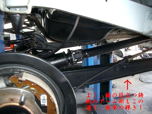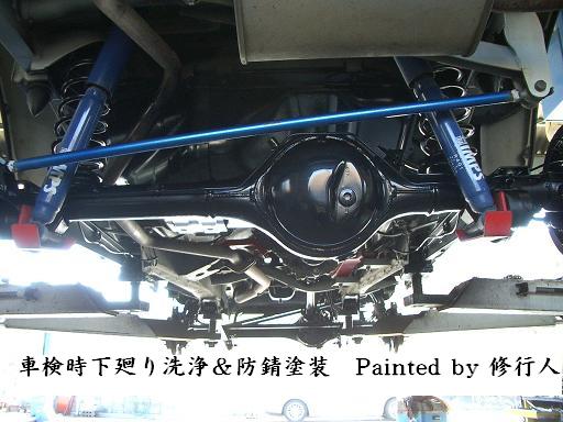 | ※ちょっと宣伝に、なってしまいますが・・・・この場をお借りして、下回りの錆止めについて・・・・あ〜ダ、こ〜だ、と・・・・・(修行人のこだわり) レストア侍:ふむふむ・・こちらの四輪駆動車は、錆も目立たず輝いている・デ・ゴゼ〜マスな・・・・ 修行人:これは、五年経過しているジムニーですけど、車検のときにアンダーコートを塗装したものです・・・・実は、この車、新車の初回車検よりアンダーコートは施工しています。 修行人:車検ごと欠かさず防錆剤入りのアンダーコートを施工することにより、これだけのコンディションが維持できるのです。 錆びたからといって、いきなりアンダーコートを施工しても、まず、こんなに綺麗には仕上がらないでしょうね・・・ ましてや、五年たった状態がこのコンディションですから、同じ手入れをしていれば、十年後もいいコンディションでいられる可能性がありますよね・・・・ レストア侍:なるほど・・・車をよいコンディションで維持してあげれば、別に、レストアなんてする必要が、ないわけでゴゼ〜マスな・・・・ 今日は、出番無しですな・・・・それでは、失敬するぞ・・・ 修行人:最近は、時間や料金の圧縮やコスト削減のため、下廻り洗浄やアンダーコートはカットする業者が多いのですが、修行人の所では皆さんにおすすめしています。↓の写真で、出来栄えを観てやってください。 |