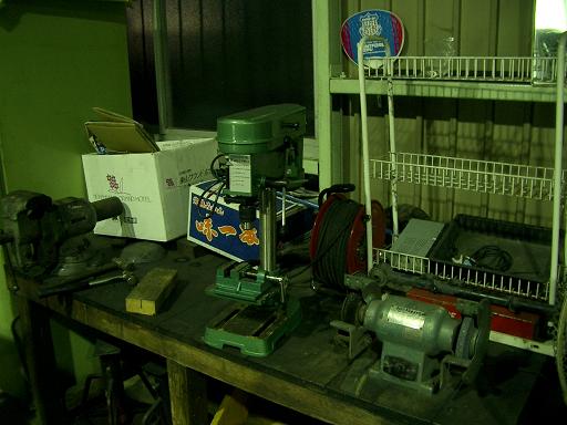 2008年5月某日のレポートです。 今回より、写真がたくさんUPできるブログの方へ、作業レポートはUPいたしますので、後ほど紹介いたします! ・・・・って事で、今回製作したのが写真の 修行人SN007(バトル作業台エボルチオーネ) 簡単に言いますと、\980で買ってきた木工用の作業台を、鉄工や溶接ができるように改造しただけなのですが・・・・・