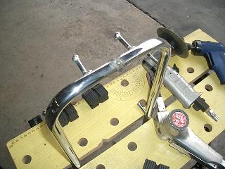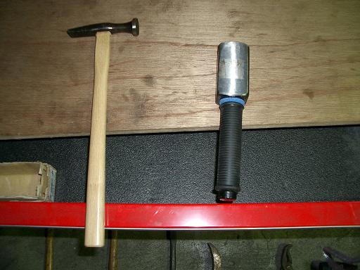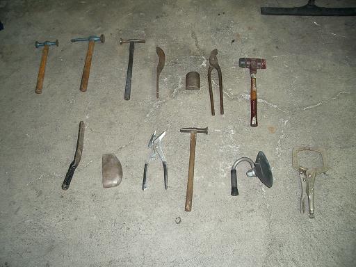 2004年12月(道具調達の巻)久々に、倉庫の中にある鈑金道具を引っ張り出してみました。 整備の方がほとんどですので鈑金はほとんどやりません・・・・・よって、工具はぐちゃぐちゃ 工具箱も、作業場も少し整理する必要がありそうです・・・・ちなみにボール盤はお客様からの頂き物です。(棚卸、崩れ品???でも使えそう?)THANKS! 道具をチェックしてみました。 結構・・・そろってます・・・・ハンマーあて板関係は、ほぼ完璧ですね・・・・・ 右写真のハンマーはやすり目のハンマーで、奮発して購入したニューフェイスです。 右のグリップの付いた金棒はアンビルハンマーといい、たたくことも出来るし、あていたとしても使用できるみたいです。(本業の整備のときかなり重宝している一品です。) 以上の道具たちで・・・・トンテンカンやっていきたいと思います。 おっと・・・忘れてました、溶接機です。KSランラン(笑える名前・・・・パンダマークも標準装備・・だけど・・・小型で持ち運びできる逸品)はガス溶接用 GEMMY(この名前も個人的には笑える・・・意味不明)はMIGの半自動溶接機です。 でも、アンタ・・・まだ・・・おもちゃしか作ってませんから・・・・・・・・・・・・・・・・残念! ネタはあるのに、進まない?・・・・斬り! |