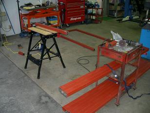 10月10日 何故か?こじんまりと、専用ラック(使い古しの整備ワゴン)に鉄骨と衝動買いした、品物がセットされています・・・ 鉄骨なんか、まだバッチリベルトで固定されていて、開放する気配も無い所が、修行人のやる気のなさが伺えます・・・・・・汗 今回の主な材料は、1.6mmの50mmスクエアーのスチール(ただの鉄骨)です。これが、修行人の手で、軽トラの荷台と合体!!!! さて、何が出来るのでしょう??? あまり、皆さんの期待を煽って、出来たとき、な〜んダ!!なんて、言われちゃうと困るので・・・・ 原動機も付かず、操縦も出来ないものと言っておきましょう・・・ |