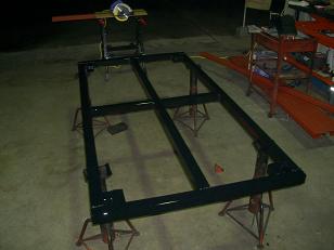 10月11日 いよいよ、梱包を外し、おツ始めちゃいました・・・・ 気になっていた、丸ノコでの鉄骨の切断は、面白いほど良く切れて、快調そのものですね・・・丸ノコで鉄骨、八つ裂きにして、仮組み点付けして、寸法測ると、バッチリです。メジャーと現物あわせだけで、組んだとは思えないほど、しっかり長方形が出来てます。 溶接も、強度重視?で見た目は程ほど・・・・・汗、補強も入れてしっかりとつけなければ・・・何せ、重たい物載せるのだから・・・(ヒント?) 塗装が完了して、怪しく黒光りする、一段目フレーム完成です・・・ 次は、これと同じものを、もう一組作らなければ・・・・・ つづく・・・ |