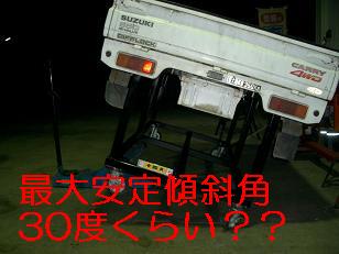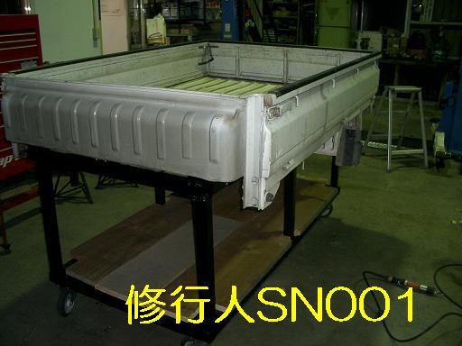 10月14日 作業は昨日完了しておりまして、UPできなかった分です・・・・ ウインカーなどの保安部品(必要ないけど一応)も取り付けて、厳しい完成検査?と試運転(構内のみ)を行い・・・・・いつものように、修行人のサインを最後にいれて、いよいよ・・・ じゃじゃ〜ん!!修行人初の大作! 修行人SN001(通称名はまだ秘密)完成です!! (主要緒元)ボディー:荷台 機種名:まだ秘密 車名型式:修行人SN001 トランスミッション:無し 駆動方式:人力牽引 寸法:軽トラ荷台部とほぼ同じ 重量:不明(かなり重い) 燃費:0.3km/グリコ一粒 エンジン:無し(人力) 最大積載量:積めるだけ(ギャルだけってのも観たことある) さて、次回、いよいよ修行人SN001実戦配備となります!! これで、修行人クイズの答えが明らかに・・・・・ そして、交代の一台が、また修行人の荒業で、引退の花道へ・・・・お楽しみに・・ つづく・・・ |