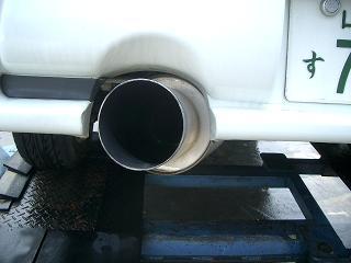 ・・・・・で、今回の、メインは、JASMA保安基準推奨品!!(本当か??)のSU○ARUの爆音マフラー・・・・・汗 開口部がでっかいです。多分、長期使用で、消音材が痛んで、音が大きくなってきたのでしょうね・・・・・ボクサーサウンドが心地よいどころか、こりゃ、もう迷惑です・・・・・