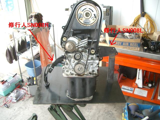 2008年5月23日のレポートです。 小物になってしまうのですが・・・今回も、ブログの方へ、作業レポートはUPいたしますので、後ほど紹介いたします! ・・・・って事で、今回製作したのが写真の 修行人SN008L&R(F6Aのアッシー君右と左) 日頃、常々、エンジン整備をしていると、安定感が悪いエンジンに、脚をつけただけなんですけど、これが非常に安定しているんですよ・・・