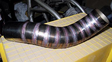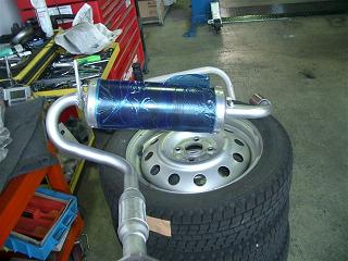 とりあえず、シートメタルをサイレンサーにぐるって巻いて、現物合わせ、今回は二枚巻きで、ほぼぴったりになりましたので、そこで、溶接して完成!